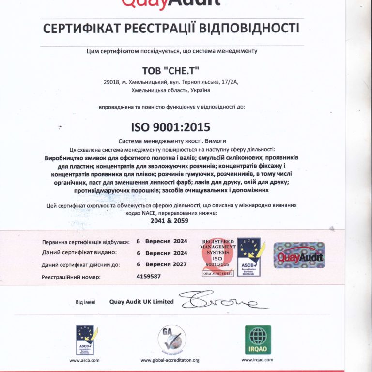 Компанія “CHE.T” успішно пройшла аудит ISO 9001:2015